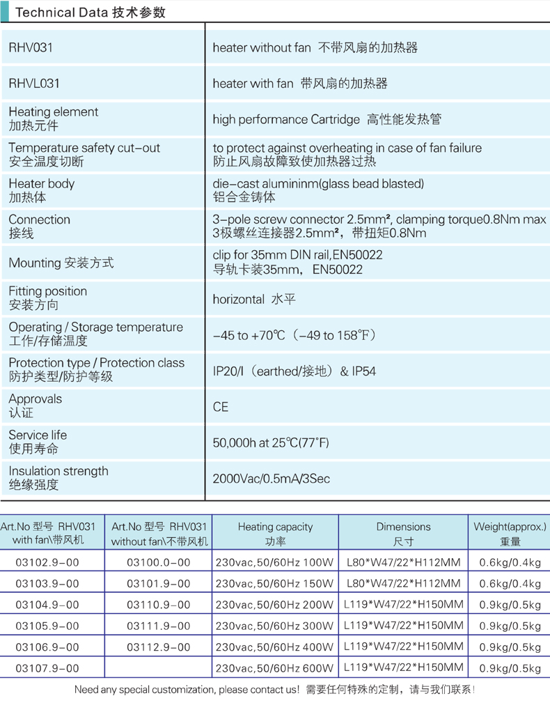 省空間型風扇加熱器RHVL 031系列